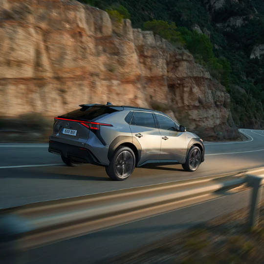 Le Toyota bZ4X confère un plaisir brut de conduire. Un centre de gravité bas, la batterie sous le plancher et l’excellente transmission intégrale* (sur AWD uniquement) garantissent au SUV bZ4X une stabilité fantastique et une maniabilité exceptionnelle. Agile et réactif, embarquez dans un voyage à bord de ce SUV électrique et découvrez de nouvelles sensations de conduite. Avec sa batterie de dernière génération, le bZ4X vous permet de parcourir de longues distances en toute sérénité, sans compromis sur la performance : jusqu’à 513 km d’autonomie selon norme WLTP.